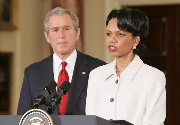 C’est en ce sens qu’en 2007, l’administration Bush soutiendra une proposition japonaise visant à créer un dialogue de sécurité quadrilatéral (Quadrilateral Security Dialogue, QUAD) entre les États-Unis, le Japon, l’Inde et l’Australie. Et que commence en 2008 la négociation d’un traité de libre-échange transpacifique (Transpacific Partnership, TPP). Mais les engagements militaires américains de plus en plus importants au Moyen-Orient (Afghanistan, Irak) bloquent largement ce tropisme vers l’Asie. Mais les arguments, objectifs et moyens exposés par Condie Rice en 2000 seront largement repris, une décennie plus tard, par l’administration Obama.