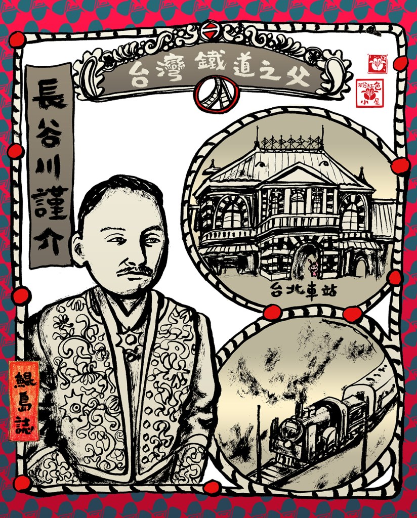 Médaille pour le centenaire de la première ligne de chemin de fer (1881-1981). Et imagerie du « père [japonais] des chemins de fer taïwanais« , HASEGAWA Kinsuke.