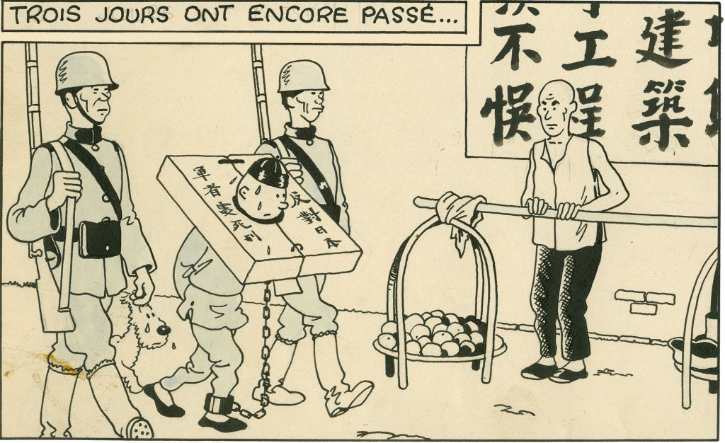 * Dénonciation du colonialisme: Bien que l’histoire soit centrée sur l’impérialisme japonais, Hergé ne manque pas non plus de critiquer le colonialisme occidental. Plusieurs des personnages européens sont des caricatures de l’arrogance, de la brutalité et de la cupidité colonialistes. Ils ne valent pas mieux que les militaires et colons japonais. Au cours de ses pérégrinations, Tintin sera ainsi ballotté du secteur britannique où le cynique Dawson dirige la police internationale , à la zone d’occupation militaire japonaise.