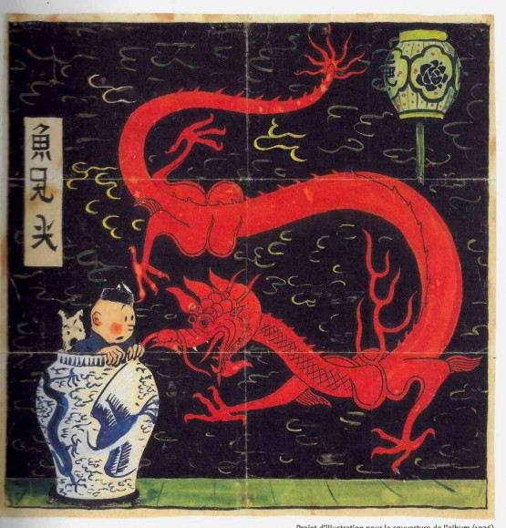 * Sur Le Lotus Bleu et sa célèbre couverture au dragon rouge: