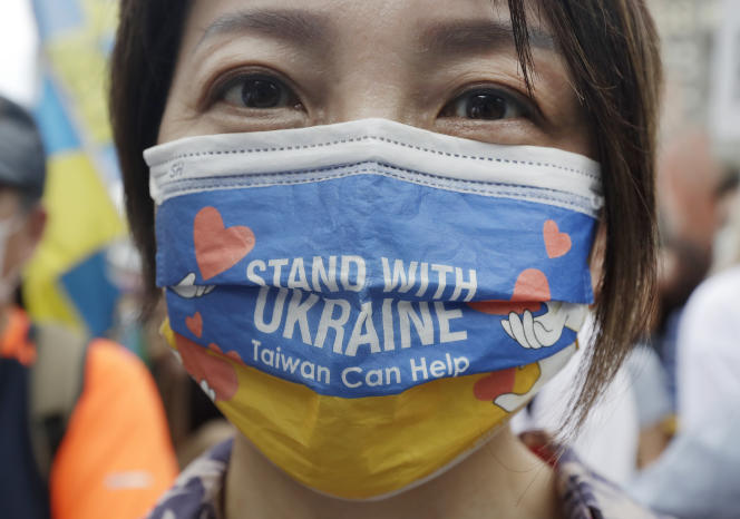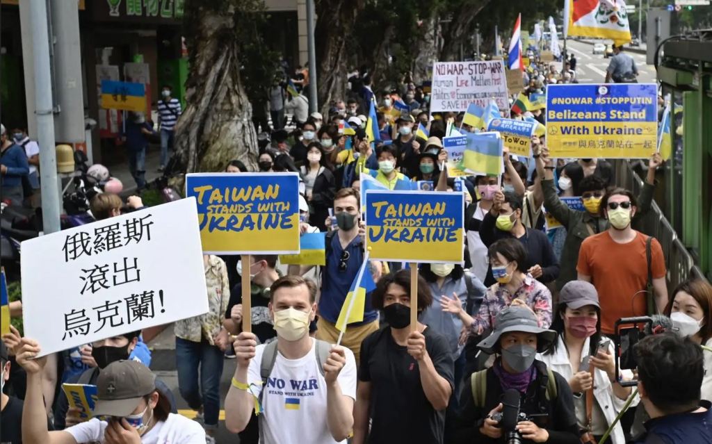 Les médias et les réseaux sociaux taïwanais sont, comme au Japon, réputés s’intéresser assez peu à l’actualité internationale hors les relations avec les Etats-Unis, le Japon, et la Chine. Mais l’agression russe contre la lointaine Ukraine a focalisé l’attention médiatique et de l’opinion publique. Des rassemblements de rue et des collectes de dons financiers et matériels en soutien à l’Ukraine se sont très vite organisés dans plusieurs grandes villes. D’autant que les autorités politiques ont immédiatement pris position, en contraste avec le silence initial des autorités de Pékin. La présidente TSAI Ing-wen (élue en 2016, réélue en 2020, PDP, indépendantiste) a condamné sans délai et sans réserve l’intervention russe, et engagé la mise en œuvre des sanctions économiques internationales successives contre Moscou : « L’engagement du peuple ukrainien à protéger sa liberté et sa démocratie, son dévouement intrépide à la défense de son pays, ont suscité une profonde empathie de la part du peuple taïwanais, car nous nous trouvons, nous aussi, sur les lignes de front de la bataille pour la démocratie » (2/3/2022). Elle répète régulièrement dans ses discours et déclarations ce soutien au gouvernement et au peuple ukrainiens, y compris en temps que cheffe des armées. Les médias internationaux et les think tanks géopolitiques ont, parallèlement, multiplié les comparaisons entre la Russie et l’Ukraine, et la Chine et Taïwan. La tonalité dominante étant le risque d’un schéma taïwanais comparable à l’épisode ukrainien : «Aujourd’hui l’Ukraine, demain Taïwan ?». Il est vrai que les éléments de comparaison sont nombreux et pertinents, sans être des parallèles déterminants pour l’avenir.