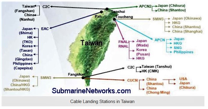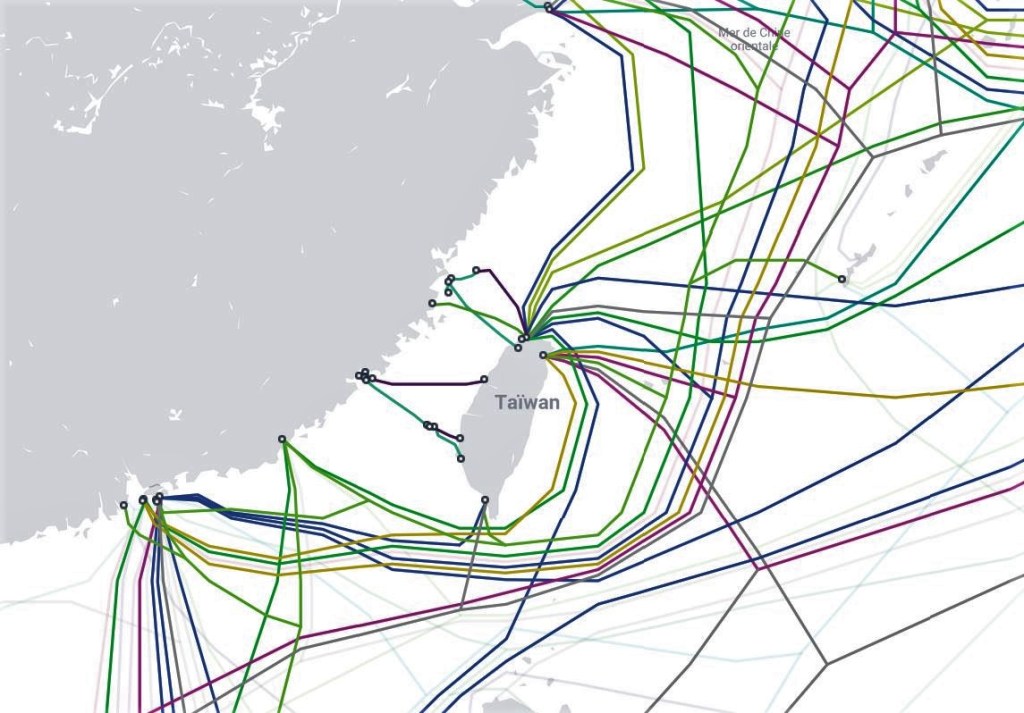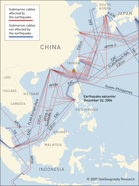 3 Cf. les cartes: https://www.submarinenetworks.com/news/cables-cut-after-taiwan-earthquake-2006 ; & : https://www.researchgate.net/figure/Effect-of-the-2006-Taiwan-earthquake-on-submarine-cables-5_fig1_224545001