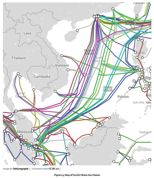Cette dépendance aux câbles sous-marins concerne en réalité toute la région Asie-Pacifique, avec ses nombreux archipels et ses multiples îles dispersées : le Japon, qui ne dispose que de deux stations d’atterrissage, est aussi fragile que Taïwan ; 40 câbles atterrissent à Singapour. D’autant que de nombreux câbles essentiels transitent par la mer du Chine méridionale, revendiquée par Pékin qui ne cesse d’y renforcer sa présence militaire, et met des obstacles à la pose de certains câbles8. .