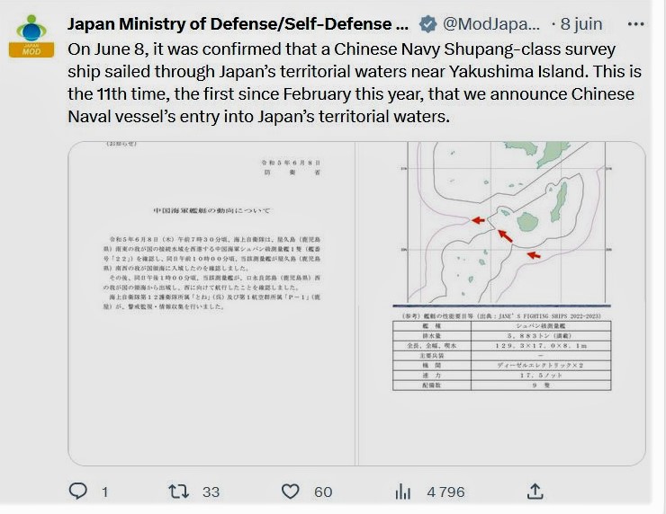 Bulletins quotidiens des ministères de la Défense taïwanais et japonais, 2023