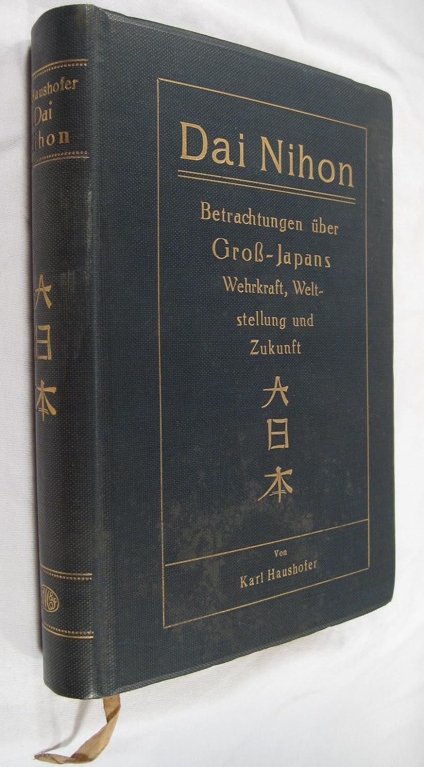 HAUSHOFER Karl, Dai Nihon. Betrachtungen über Groß-Japans Wehrkraft, Weltstellung und Zukunft [Reflections on Greater Japan’s Military Strength, World Position, and Future], Berlin, Mittler und Sohn, 1913, 378p. > En pdf. : https://ia802900.us.archive.org/32/items/KarlHaushoferBetrachtungUeberGrossJapan/BetrachtugenUeberGross-japans.pdf