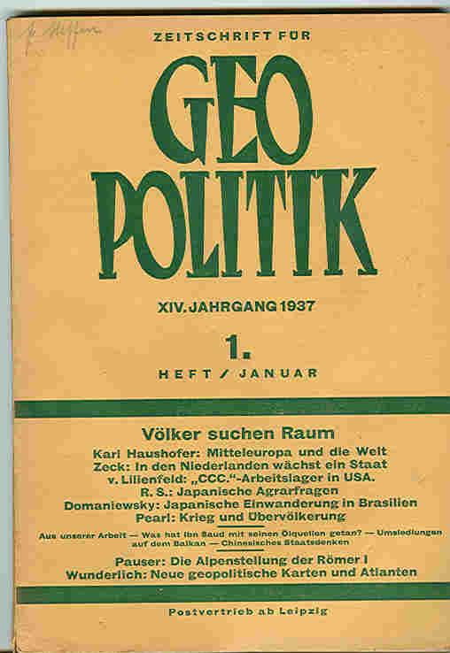 SEKULOVSKI Goran, Une revue emblématique de géopolitique en Allemagne : la Zeitschrift für Geopolitik (1924-1944) et son actualité, Institut de géographie de Paris, Bibliothèque de géographie – Bibliothèque Interuniversitaire de la Sorbonne (BIS), 2017, 16p. URL: https://shs.hal.science/halshs-03141090/document . & : https://www.lecfc.fr/new/articles/241-article-15.pdf