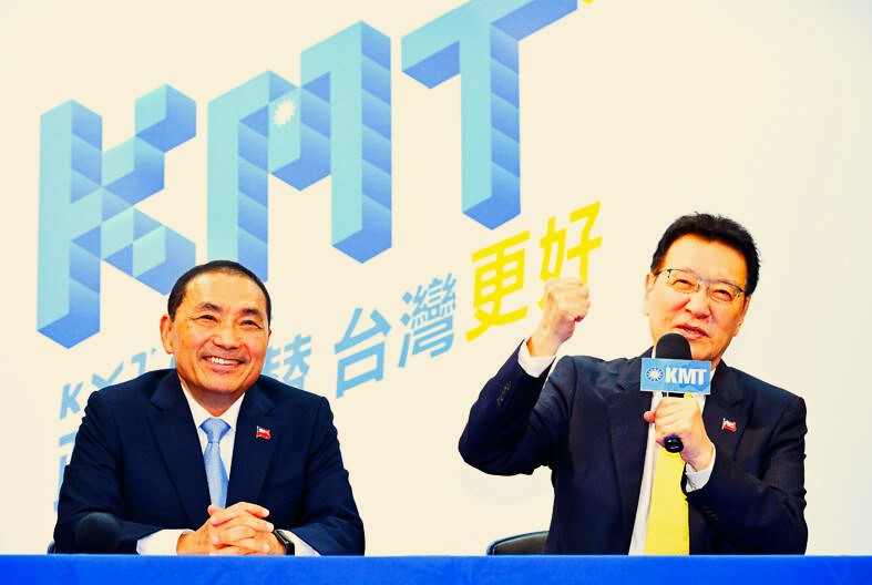 Le ticket du parti nationaliste Kuomintang (KMT, parti bleu) est formé par HOU You-yi (侯友宜), ancien chef de la police et actuel maire de New Taipei ; et à la vice-présidence JAW Shaw-kong (趙少康), actuel président de la Broadcasting Corporation of China (中廣). La trajectoire politique de ce dernier est un peu sinueuse : membre de la faction Nouvelle Alliance du KMT, il avait quitté celui-ci lors d’une scission en 1993 pour former le Nouveau Parti (New Party), favorable à un rapprochement avec Pékin. Avant d’être réintégré dans la parti nationaliste en 2021. JAW est réputé encore très proche de Pékin. L’absence d’une femme dans ce ticket KMT, outre qu’il reflète le conservatisme patriarcal du parti, pourrait faire perdre des voix au candidat.