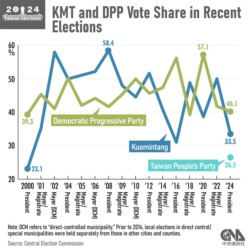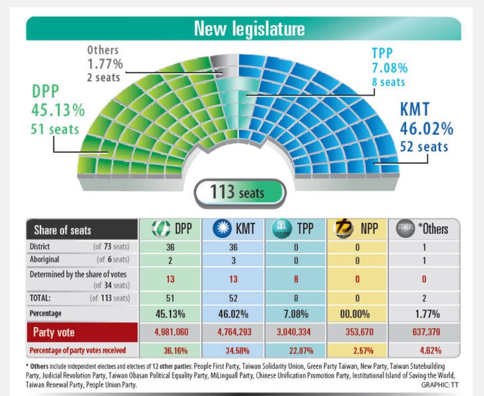 Législatives : le Kuomintang l’emporte d’un siège sur le DPP, mais c’est le TPP qui fera la décision