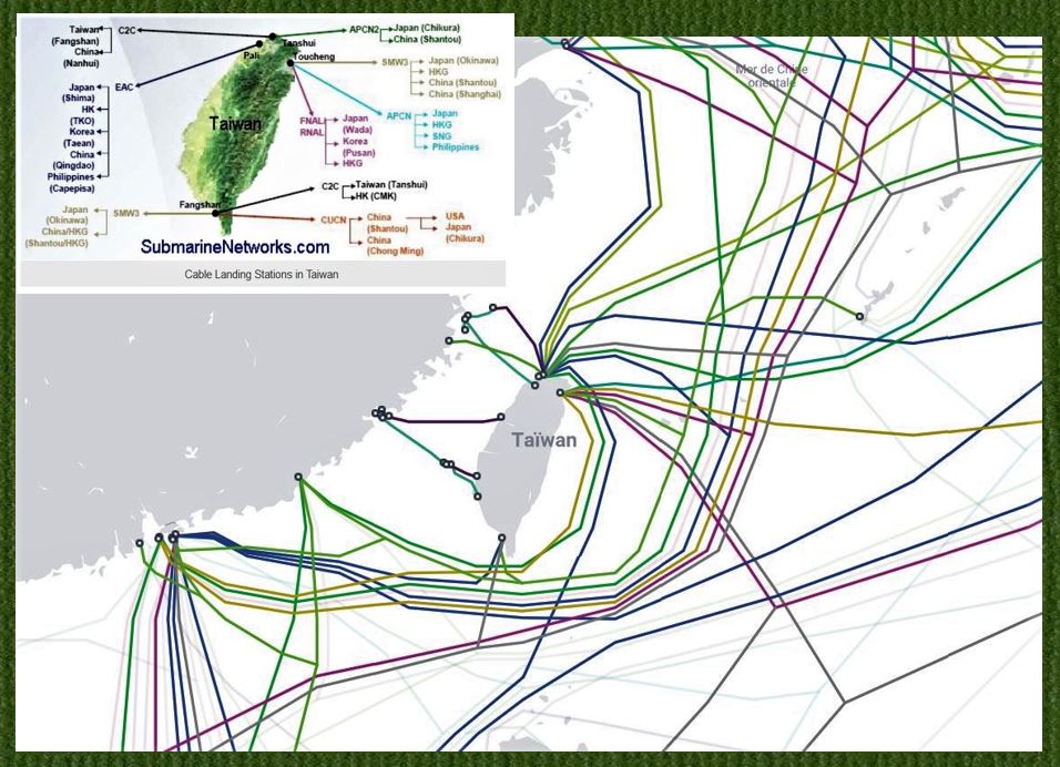 L’île de Taïwan est extrêmement dépendante des câbles sous-marins en fibre optique : environ 95% du trafic données et voix de cet Etat passent par 14 câbles et quatre stations d’atterrissage. Or, la vulnérabilité de ce type d’infrastructures de communication est importante. Régulièrement coupés par les séismes de forte magnitude, ou endommagés par des dragueuses deLire la suite « La dépendance de Taïwan aux câbles sous-marins est particulièrement importante (mars 2023) »